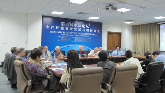 9 月 16 日晚 7 :00 第三届中法论坛相关议题继续在星空图书馆进行探讨,校长刘书瀚教授就“生产性服务业发展与创新研究”议题发表演讲,并与参会人员进行了热烈的讨论和交流。近十位法国专家、星空科研处处长张坤生教授、公共管理学院院长孙钰教授、经济学院党总支书记白玲教授、院长刘小军博士以及经济学院相关课题组成员、研究生四十余人参加了研讨。