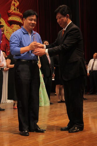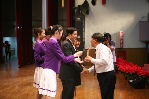 最后,校领导为获奖单位颁发了奖杯。大会在校领导与全场教职工共同高歌《歌唱祖国》的歌声中落下帷幕。
