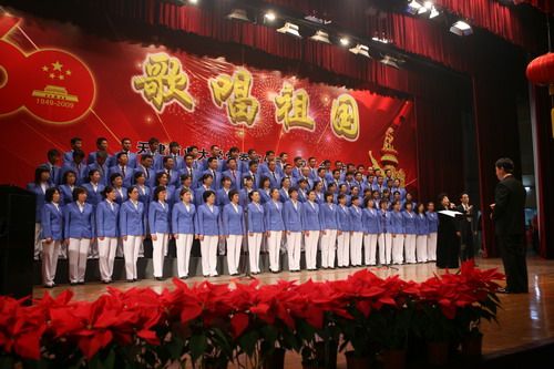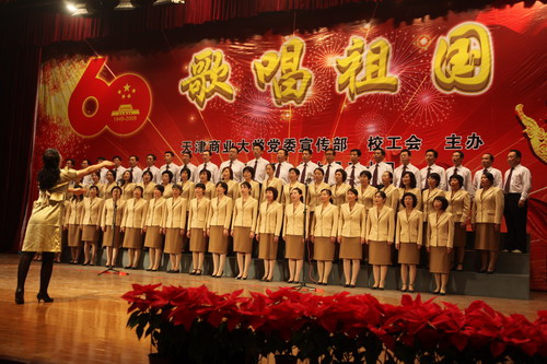 在新中国60华诞到来之际举行全校教职工歌咏比赛,既是献给祖国母亲的一份祝福,更激发了广大教职工的爱国热情,把满腔热忱化作投身教学、科研和管理工作的实际行动,为学校的发展建设,在各自的工作岗位上努力贡献自己的一份热情、一份力量。服务天津经济社会发展,以优异的业绩回报伟大的祖国。