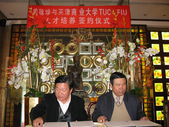 10 月 20 日,校党委副书记杨万义在 TUC-FIU 合作学院王文君院长、黄成洪书记的陪同下,专程赴北京参加 TUC-FIU 合作学院与新加坡“美味珍食品科技有限公司”联合培养人才的合作签约仪式及 TUC-FIU 合作学院实习基地的挂牌仪式。