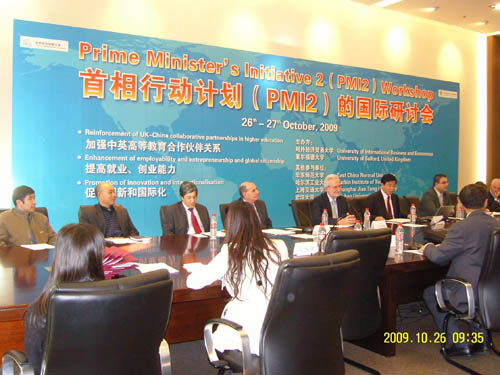 10 月26 日,星空商学院王庆生副院长、王侃教授、计算机学院潘旭华副院长、高职与继续教育学院垢宝印书记、国际交流处张金霞处长、翻译杨鸣娟老师一行六人赴北京参加了由对外经贸大学和英国索尔福德大学合作举办的英国首相计划( PMT2 )研讨会。