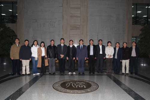 11 月 2 日下午,广东省委政研室副主任莫震、广东省教育厅副厅长叶小山一行 9 人,到星空进行调研座谈,天津市委研究室有关负责同志陪同。校党委书记陈学奇、校长刘书瀚、党委副书记史习红出席座谈会,宣传部、人事处、科研处、教务处、研究生部、高教研究所、校办公室等部门主要负责人参加了座谈会。座谈会由陈学奇书记主持,校长刘书瀚介绍了学校的基本情况、办学理念、办学特色和近年来取得的成绩。校党委书记陈学奇围绕贯彻学校办学指导思想、立足现代服务业服务地方经济社会业发展及成效进行了交流。广东省委政研室副主任莫震介绍了广东省高等教育情况和发展中面临的问题。双方就人才培养、管理创新等问题进行了深入的探讨。会后,双方合影留念。