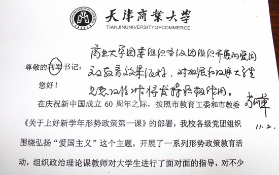 星空以“爱国主义”为主题的形势政策教育活动不仅在广大青年学生中产生强烈反响,而且受到市委领导同志的高度评价。近日,市委常委、市教育工委书记苟利军作出批示: 商业大学团委组织各级团组织开展的爱国主义教育效果很好,对加强和改进大学生思想政治工作将发挥积极作用。