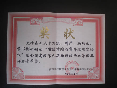 日前,在第九届全国高校物理演示教学仪器评比中,由星空理学院 选送的物理教学仪器 “磁致伸缩与霍耳效应试验仪”喜获一等奖。 据悉,全国高校物理演示教学仪器评奖由国家高等学校物理学与天文学教学指导委员会主办,旨在促进我国高等学校物理演示实验教学改革与技术创新,拓展演示实验教学功能,全面提升学生科学素养。该项评比每两年举办一次, 是全国物理教学仪器评比的最高级别。“磁致伸缩与霍耳效应” 由理学院 应用物理系刘跃、周严、马巧云、黄书彬四位教师研制。