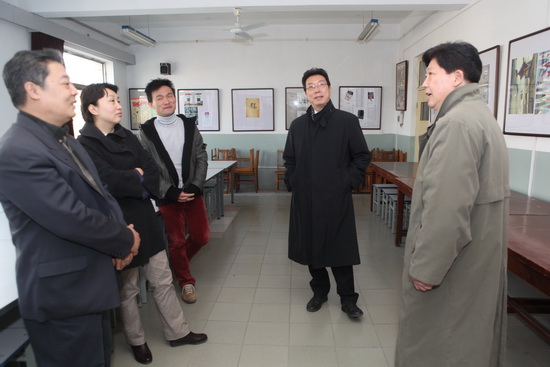 11 月 17 日下午2:00点 ,学校领导陈学奇、刘书瀚、史习红、魏胤亭前往艺术学院参观了该院师生艺术设计作品展览。领导们先后参观了教师们的绘画及一些获奖的标识、标签、建筑、零件作品的设计原图,还看了学生们的一些优秀的设计作品和学生们到外景地现场写生作品及一些基础素描和摄影作品。另外,参观了学生们上课的教室和上课用的教具,学校领导的关心使艺术学院师生受到很大的鼓舞。参观后学校领导与艺术学院领导就学院的发展方向及学科、专业建设工作进行了交流和座谈 。
