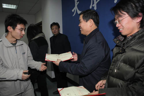 校广播台、校报记者团、阳光网站负责同学张爽、闫燕、林欣瑜在会上分别发言,总结一年来的工作成绩,并对如何做好新一年的媒体宣传报道工作进行交流。受表彰学生代表高丽婷、盛璐、滕杰同学先后发言,畅谈了在各自工作岗位上的心得体会。