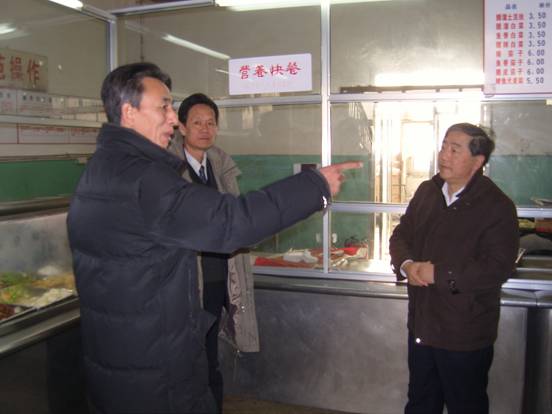 日前,正值放寒假前、学生紧张期末考试期间,校领导马三津副校长非常重视学生餐饮工作, 1 月 14 日中午,亲自深入学生食堂一线,带领总务处领导、集团领导一起,到学生食堂检查饭菜质量、品种、价格,亲切与就餐学生交谈,听取学生对食堂工作的建议。要求集团做好学生期末近几天的餐饮工作,保证品种,保证质量,保证时间、稳定价格,让学生吃上热乎可口的饭菜。同时要求集团安排好寒假留校学生的就餐工作。