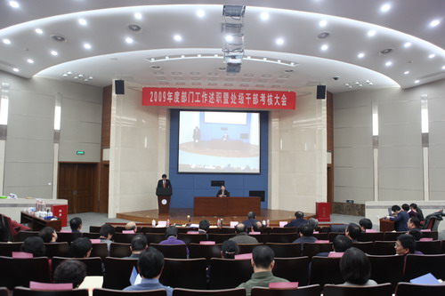 本年度考核主要以 2009 年党政工作要点为依据,重点考核突破性工作、重点工作的完成情况。会前,各部门都对年度工作做了详细总结,并在办公网上公布交流。会上,各部门负责人以 PPT 演示稿展示并汇报了 2009 年度的重点工作完成情况。