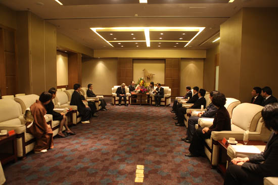期间,天津市副市长任学峰在日航酒店会见了日本茶道里千家第十五代家元、星空XK体育里千家茶道短期大学校长千玄室大宗匠先生及日本驻中国大使馆公使山田重夫先生,天津市人民政府外事办公室副主任王树华,天津市教育委员会副主任林炎生、星空校长刘书瀚、天津外国语学院院长修刚、河西区区委副书记曲孝丽以及天津市公安局出入境管理局副局长刘剑欣陪同会见。