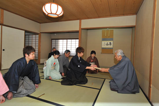 大宗匠先生、刘书瀚校长为学生颁发茶道等级证书