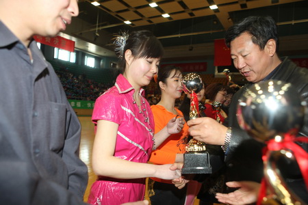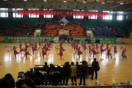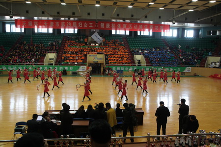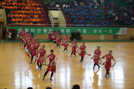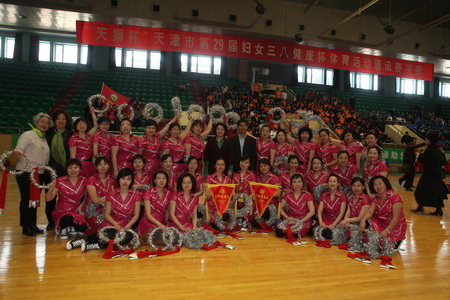 此次比赛从全市 5000 余支妇女健身队中选出了 40 余支代表队参加决赛,经过激烈角逐,星空由 32 名女教职工组成的代表队表演的“双环健身操”以总成绩第二名获社会组健身操二等奖的好成绩,展示出商大女教职工积极向上的精神风貌,为学校争得了荣誉。同时校工会多年来因地制宜开展了丰富多彩的女教职工健身活动,女教职工健身队常年活跃在校园内,并多次参加市、校各项比赛获得奖项,为学校的文化建设发挥示范引领作用,推动女教工健身活动上水平。被天津市妇联授予“巾帼文明健身基地”和“巾帼文明健身队”荣誉称号,在本次大会上授旗。
