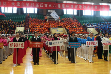 由天津市妇联、市体育局、市总工会、市农民体协、市妇女体协共同主办天津市第 29 届妇女三八健康杯体育活动通讯赛决赛于 3 月 28 日 (星期日)上午 8:30 在天津市人民体育馆举行。市委常委、组织部部长史莲喜、市人大常委会副主任邢明军、市政协副主席陈永川以及主办单位的领导出席了开幕式。