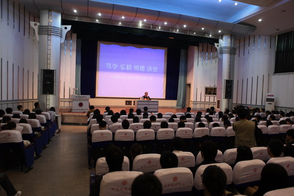 5 月 4 日 下午,学工部、团委邀请星空XK体育 30 年校庆活动工作领导小组常务副组长、副校长魏胤亭作校训解读专题报告。各学院分管学生工作领导,分团委书记 , 全体辅导员,全校主要学生干部,共近 500 人参会。报告会由校团委书记王罡主持。