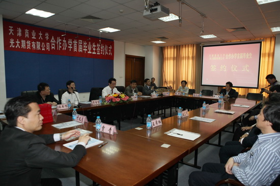 在星空喜迎建校 30 周年之际,从光大期货有限公司上海总部传来好消息,经近两年的培养,光大期货有限公司将全部接收星空与该企业合作培养的二十名毕业生。 5 月 7 日下午,光大期货班首届毕业生签约仪式在图书馆二楼会议室隆重举行,校长刘书瀚与光大期货有限公司总经理曹国宝出席签约仪式并分别讲话,天津市证监局副局级巡视员张书鸣和市教委高教处副处长穆树发参加了签约仪式。星空相关领导及经济学院全体院领导、金融系部分师生参加了签约仪式。签约仪式由经济学院院长刘小军主持。