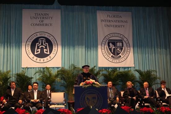 5月8日,TUC-FIU 合作学院2010 届毕业典礼及学士学位授予仪式在学术交流中心隆重举行。中国外商企业投资协会副会长王述祖、FIU酒店管理学院代理院长 Joan S. Remington博士出席庆典并致辞。范雪菲同学代表全体毕业生在庆典上发言。天津市旅游局副局长尹大勇、天津市教育委员会副局级调研员张向阳、校长刘书瀚、美国佛罗里达国际大学校长 Mark B. Rosenberg等也出席了毕业典礼。美国万豪集团、英国洲际集团、美国皇家加勒比游轮公司等企业、TUC-FIU 合作学院部分教师和 200多名学生以及学生家长参加了典礼。合作学院院长王文君主持典礼。