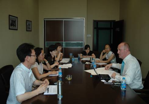 当天下午, John Atkinson 博士与教授中澳合作项目相关课程的教师进行了会谈。双方就中外课程的对接,以及新教学计划的制定进行了详细的沟通。