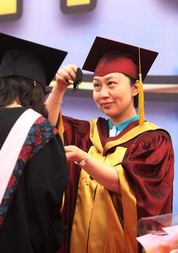 随后,24 位导师代表为2986 名身着学位服参加毕业典礼的毕业生一一颁发毕业证书和学位证书,拨流苏,并祝贺他们完成学业,开始人生的新征程。历时两个半小时的颁证仪式,始终沉浸在隆重、热烈、和谐的气氛中。