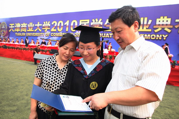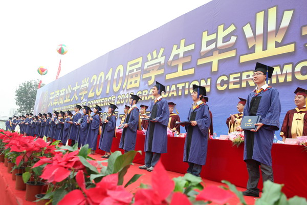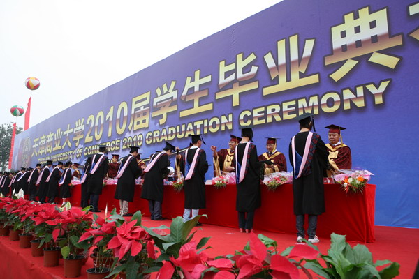 毕业典礼在庄严的国歌声中开始。副校长魏胤亭代表校毕业资格审查委员会和学位委员会宣布 2010 届学生毕业资格审查和学位授予结果。刘书瀚校长发表了热情洋溢的讲话,对 2010 届学业有成的毕业生表示祝贺并鼓励他们在人生新的征程中要“诚信立世,奉献于人;博学重践,锐意创新;心系母校,共求发展。”