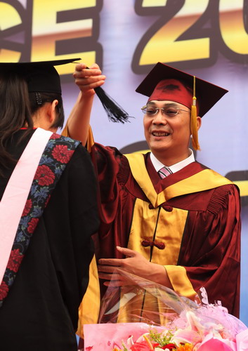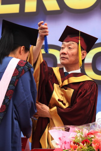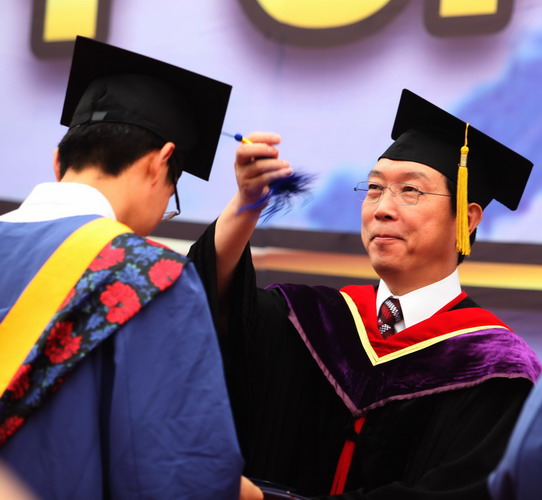 校长刘书瀚为毕业生颁发毕业证书和学位证书并拨流苏