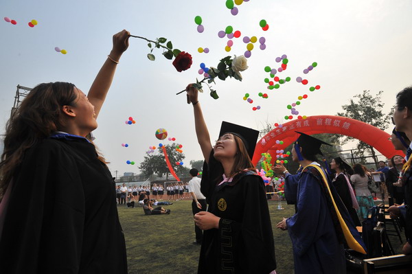 典礼最后,师生齐唱《星空XK体育校歌》,嘹亮的歌声响彻校园。随着一只只载满学子梦想和希望的五彩气球飞向天空,毕业生将手中的学位帽高高抛向了天空,这一刻,内心成功的喜悦和对未来人生的无限向往化为了毕业生脸上幸福的笑容,这一刻,母校的美丽景象和师生深厚情谊化为永恒将永远深藏在毕业生的心中。