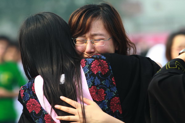 四十位教师代表接受毕业生献花