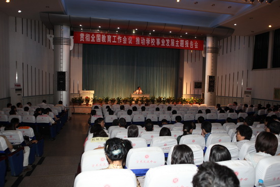 刘书瀚校长的报告共分三个部分:一是认真学习教育规划纲要颁布和实施的重大意义,准确把握教育发展的形式;二是面对未来十年中国高等教育大发展的重要战略机遇期,星空将主动适应高等教育改革发展的新形势,进一步规划好星空的办学目标、发展思路、建设路径;三是全力实施特色发展战略、重点发展战略和国际化战略,在人才培养、学科建设和管理创新上,深化改革,加强内涵建设,实现学校的科学发展。