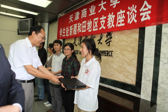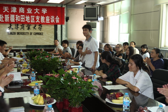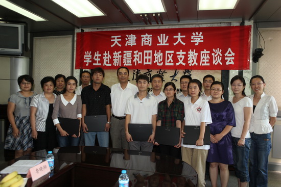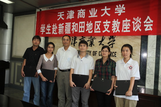 为落实全国对口支援新疆工作会议精神,做好天津教育支援新疆工作,校党委按照天津市委、市政府的部署,选派商学院工商管理类092班孜克日亚·孜布比拉,工商管理类0913班 哈丽旦·依沙克,工商管理072班 喀哈尔·喀斯木,经济学院经济学类096班布阿米娜·阿卜杜赛麦提,生物技术与食品科学学院食品商品学091班 排孜来提·伊敏尼亚孜5名学生,经过六周的集中培训将于9月12日赴新疆和田地区策勒县,进行为期一年的“双语支教”工作。