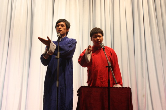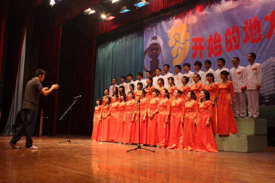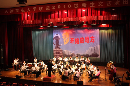 演出在星海管乐团的管乐合奏《五州神韵》中拉开了帷幕。TUC-FIU 合作学院2010级的新生陈诗元以一首《母亲》,打动了在场的每一位莘莘学子,赢得了热烈的掌声。舞蹈团的舞蹈《放飞梦想》展示了青年学子的激情与活力,话剧社的话剧《捐助》,表现了社会各个阶层的人都有自己的梦想,感人至深。2009年的“校园十大歌手”哈贵梅献唱了歌曲《一个像夏天一个像秋天》,为学弟学妹们送上了自己的祝福。礼仪队的“学子风采展示”展现了大学生大方、青春、活泼、热情、昂扬的精神面貌。由林权、张达表演的相声《你得好学》,劝诫新生在丰富多彩的大学生活中不忘学习本职,幽默有趣,包袱不断,引得台下笑声连连。星海合唱团带来的合唱《 I ’ ll follow him 》和《游戏合唱》,形式新颖、充满童趣。艾力旦为大家献上一曲《稻香》,获得热烈掌声。伴随着激扬澎湃的舞蹈《腾飞》,新生文艺演出在热烈的掌声中完美落幕。