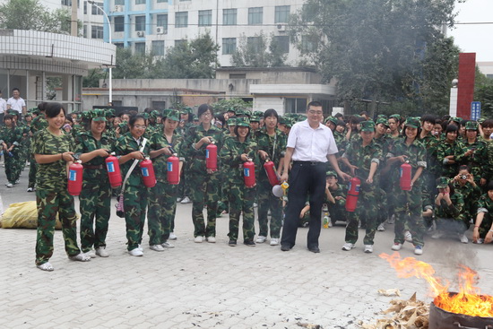 为了使学生了解和掌握宿舍楼发生各种紧急情况下安全逃生知识和逃生技巧,不断增强安全意识。9月16日中午,总务处、保卫处、学生处及各学院组织14 栋学生宿舍楼的5000多名2010级学生进行了宿舍紧急疏散演练。副校长马三津、校纪委书记路波,学生处处长贾青、保卫处副处长杨洪涛现场指导学生宿舍紧急疏散演练。总务处、保卫处、学生处等有关部门领导和工作人员,各学院党总支分管学生工作的书记、副书记和辅导员,在演练前做了大量的准备工作,并现场组织了紧急疏散演练。保卫处工作人员现场为学生讲解了灭火器的使用方法并进行了示范操作,20多名学生代表亲身体验了如何用灭火器灭火。