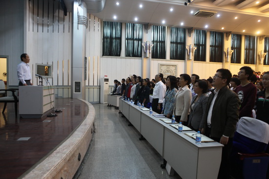 报告会前主会场、分会场全体师生齐唱星空XK体育校歌
