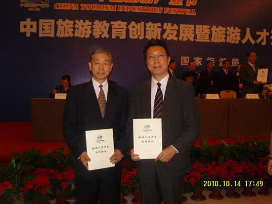 由国家旅游局、天津市政府共同主办,联合国世界旅游组织特别支持的2010中国旅游产业节10月14日上午 在我市梅江会展中心开幕。星空 TUC-FIU 合作学院和商学院所属旅游管理系、酒店管理系的近600名学生以及部分老师参加了开幕式。刘书瀚校长参加了“中国旅游教育及旅游人才开发合作及洽谈会” ,并出席了与北京首旅建国酒店管理有限公司校企合作签字仪式。