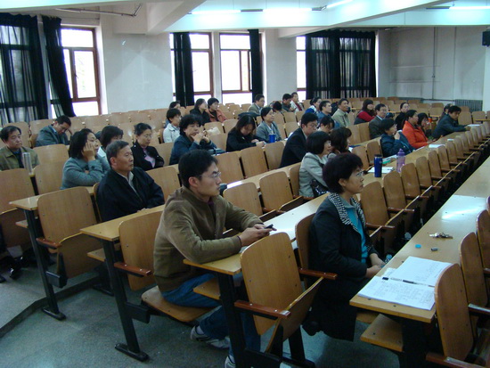 于教授以《坚守育人为本理念 提高课堂教学效果》为题发表了演讲,并播放了精心制作的PPT演示文稿。讲演分为三个部分,分别是“认识到位”、“调整心态”与“从我做起”。