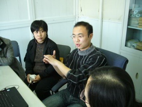 信息工程学院计算机系讲师张波工作照(中间男教师为张波)