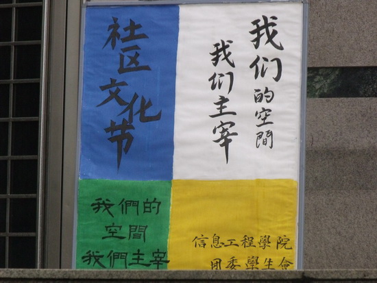为提高学生的文明道德修养和综合素质,培养当代大学生积极向上的精神面貌,进一步加强我院学生的宿舍文化建设,营造良好的宿舍环境,培养良好学习生活习惯,信息工程学院学生会社区服务部特举行以“温暖宿舍,情系同学”为主题的社区文化节系列活动。