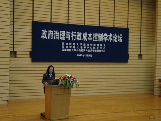 来自政府部门和高校的领导和知名学者介绍了政府治理和行政成本控制的关联性和重要性,天津市公务员管理局副局长朱钰、行政管理学会副会长兼秘书长张霁星、南开大学知名教授博导张志超、天津大学博士生导师张再生教授等分别做了学术报告,星空公共管理学院院长、博士生导师孙钰教授也应邀宣讲了她主持完成的第二个国家社科基金的研究成果,她介绍了主持完成并通过鉴定的“农村公共物品供给机制创新研究”的主要内容,从问题的提出、发达国家该领域的发展状况、我国现存的深层次问题入手进行分析,运用灰色关联方法和标杆管理等工具分析了农村公共产品的地区需求差异性、供给绩效和供给次序,给出了我国农村公共产品供给机制创新的目标、路径和实施方案。孙钰的报告理论分析深刻,实证研究论证充分,技术路线清晰,研究方法和工具恰当,紧密结合农村公共产品供给的实际状况进行剖析,引经据典,内容丰富,获得政府部门和学术界的广泛影响和好评。