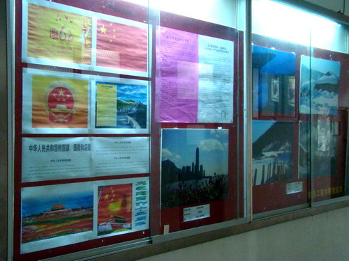为了迎接祖国六十二周年诞辰,激发人们的爱国热情,宣传栏刊载了中华人民共和国国旗、国徽和国歌的图片,以及国旗、国徽和国歌含义与产生过程简介;宣传栏还刊载了信息工程学院教职工拍摄的展现我国壮丽山河的摄影作品,其中《中国雪乡组照》获得市教育工会颁发得的天津市教职工书画摄影展赛活动“佳作奖”。