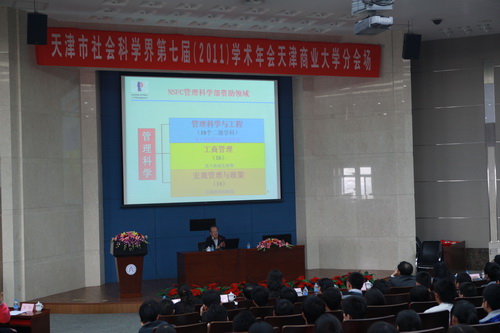 10月19 日下午,以“新规划·新视野·新发展”为主题的天津市社会科学界第七届学术年会星空XK体育分会场学术报告在图书馆三楼报告厅隆重召开。中国科学院科技政策与管理科学研究所原所长徐伟宣教授、天津市社联科研处处长殷雅丽、天津大学管理与经济学部马军海教授出席了会议。校党委副书记杨万义在报告会上致辞。公共管理学院、经济学院、商学院、理学院的300 多名师生参加了会议。报告会由 社科管理处王泓处长主持。