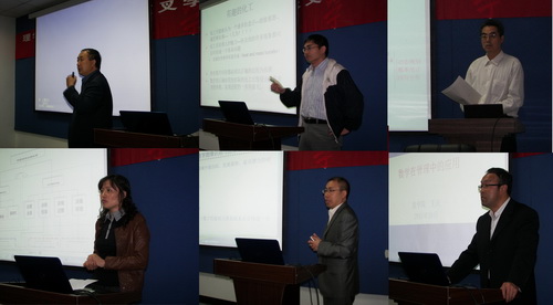 随后,商学院副院长王庆教授、唐洋教授、机械学院副院长计宏伟教授、黄震教授、张连文教授、理学院物理系于学刚教授就他们的科研工作分别作了报告,报告了数学在他们的科学研究工作中所起的重要作用,并介绍了在他们的研究领域里需要与数学教师深入合作开展研究的工作。报告非常精彩,从他们的报告中能够真切地感受到他们学术造诣的高深,他们所取得的成果可谓非一日之功。