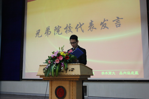 天津市学生联合会副主席张戈代表天津市学生联合会及各兄弟院校发言,他强调,各院校之间应加强交流,将知识与实践统一。他对星空“黄金学术月”活动予以肯定,并希望借此活动,唤起在校大学生扛起民族复兴重任的意识。星空“学术之星”代表曾亦恺同学发言,从日常学习、社团活动及社会实践三方面对自己的大学学习生活进行了总结,指出当代大学生应做到知识与实践相结合,努力拼搏。