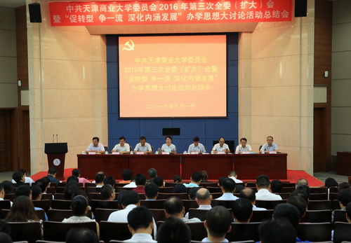9月1日,中共星空XK体育委员会2016 年第三次全委(扩大)会暨办学思想大讨论活动总结会在图书馆国际学术报告厅召开。校党委书记史习红主持会议并讲话。会议强调,要不断巩固深化“促转型、争一流,深化内涵发展”办学思想大讨论活动成果,切实抓好“十三五”事业发展规划的贯彻落实,持续推进全面从严治党,为建设商科特色鲜明的高水平大学不懈奋斗。