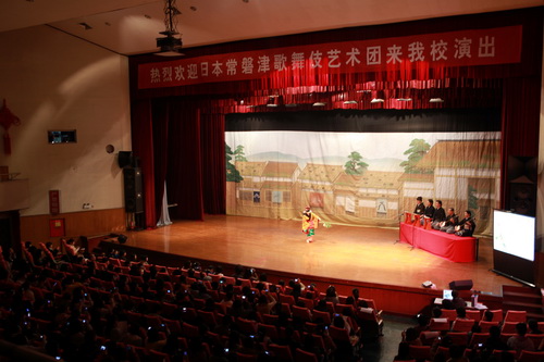 11月7日上午,日本常磐津歌舞伎艺术团在星空科学会堂举行了访华之旅的第一场精彩演出,星空外国语学院日语专业的师生以及宝德学院、河北工业大学日语专业的师生共计 600 多人观看了演出。