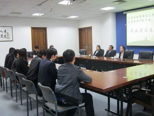 天津正信集团陈建义副总裁、正信集团滨海投资发展有限公司综合部李一玲总监、正信集团总部人力资源曹扬主管,公共事业管理系陶志梅主任、系党支部书记刘迎良及50 余名师生参加了活动。交流会前学院党委书记白洪文、院长孙钰代表学院对陈建义副总裁一行表示热烈欢迎,对集团给予毕业生实习工作的大力支持表示感谢。