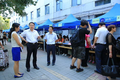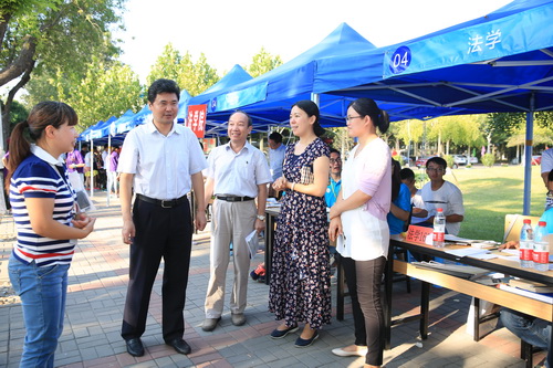 校党委书记史习红、校长葛宝臻、校党委副书记卫克武、副校长刘革生等校领导来到迎新及接站现场,亲切慰问忙碌在迎新第一线的工作人员,向大家表示感谢,并嘱咐他们要热情待人、周到服务。校领导与新生及家长亲切交谈,欢迎他们成为星空大家庭的一员。