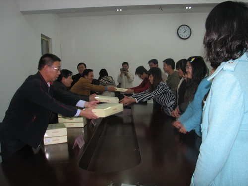 寒冬将至,天意渐冷,高职学院家庭经济困难学生群体中洋溢着浓浓的暖意,2011 年高职学院“ 情暖严冬、与爱同行 ”冬衣发放仪式在学院会议室举行。院长邢晓晖、党总支书记垢宝印、副院长马英和学生科的老师们出席此次活动。
