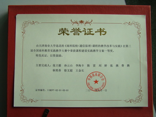 获得三等奖两项,包括:信息工程学院王金长主持的“电子工艺实习基地建设方案”与尉斌主持的“商科院校《计算机网络》课程教学的探索与实践”。