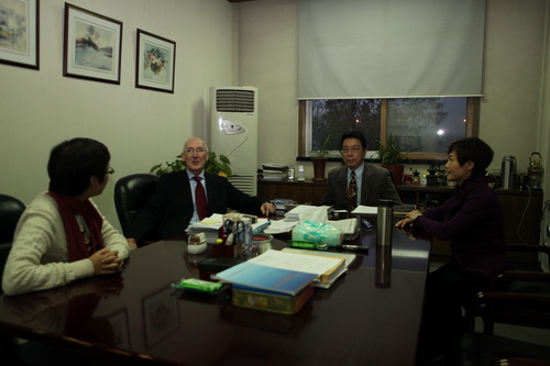 11 月 17 日下午,校长刘书瀚教授在办公室会见了英国兰卡斯特大学教授、星空客座教授 Paul Chilton ,对他的再次来访表示欢迎。刘校长肯定了 Chilton 教授在 2005-2009 年作为星空外国语学院院长期间为星空外国语言学及应用语言学学科建设和发展做出的贡献,对 Chilton 教授在卸任后继续以客座教授的身份参与星空学科建设表示赞赏。 Chilton 教授感谢刘校长百忙当中抽空与他会面,并回顾了自 05 年至今与星空XK体育的愉快合作经历。他表示,每次来访星空,学校不断发展的良好态势,学生的聪慧、活跃、和良好的外语能力和素质,以及教师的勤奋、努力和敬业,都给他留下了深刻的印象。他为能够参与星空的发展感到高兴。宾主双方还就进一步合作等事宜交换了意见。