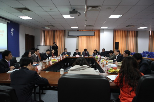公共管理学院会展专业教师分别从国际会展业发展趋势、天津会展业发展现状、特点与对策等角度与市政府副秘书长朱军一行进行了交流。