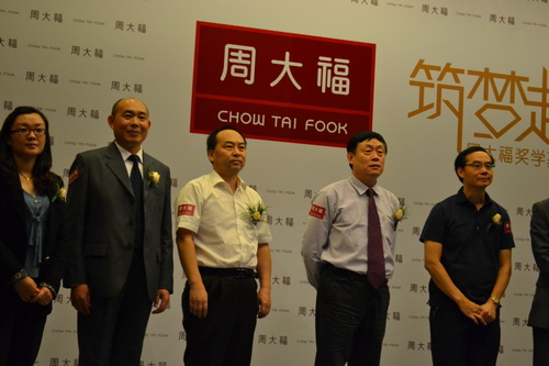 在随后的“筑梦起航”周大福奖学基金发布仪式上,周大福集团董事黄绍基先生、周大福中国营运管理中心总经理廖振为先生先后致辞,介绍了周大福集团的发展历程及企业在人才培养方面的做法和理念,并就 “ 周大福奖学金 ” 的设立宗旨进行了阐述,强调,在国内相关高校设立奖学金,不仅是为了奖励优秀、激励先进,也希望能以此发现人才、培养人才。之后获奖学生代表和高校教师代表分别发言,对周大福“真诚,永恒”的企业使命和品牌宣言进行了解读,阐述了对周大福的了解和认知,并对周大福的慈善事业表示了感谢。奖学基金颁布仪式在热烈的气氛中结束,全体与会代表合影留念。