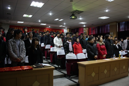 以“追忆百年辛亥,弘扬爱国精神”为主题的“ 一二·九” 征文活动中,6 名同学的优秀论文和3 名同学的封面设计作品获得奖励。征文一等奖获得者代鹏程感情饱满、慷慨激昂地朗读了自己的论文,全场也都沉浸在对先烈的缅怀中。观众自由发言环节中,同学们就辛亥革命、“ 一二·九”运动表达了自己的见解 ,并纷纷表示要在今后的学习生活中坚定信念,奋发学习,以优异的成绩为祖国和学校争取更大的荣誉。 活动最后,王樱洁老师发言,她回顾了本届团校的课程,祝贺本期团校学员顺利结业,并希望同学们在今后的发展中越走越好。