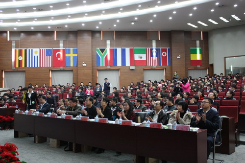 12 月 19 日下午,由市文明办、团市委、市教委、市学联联合主办,校团委承办的“感动校园之公德楷模”——天津市大学生 2011 年度评选终评在星空圆满落幕。团市委副书记冯侠、市文明办王景春处长、市学联主席庄烁今代表主办单位出席, 20 个候选学子的所在高校校领导与团委书记出席并担任评委。校党委书记陈学奇与纪委书记路波会见了各高校校领导。